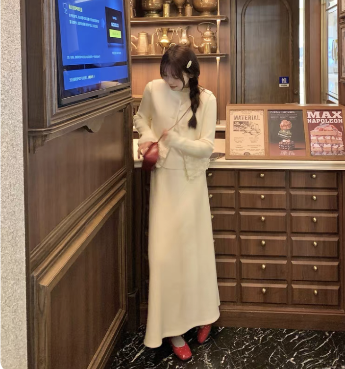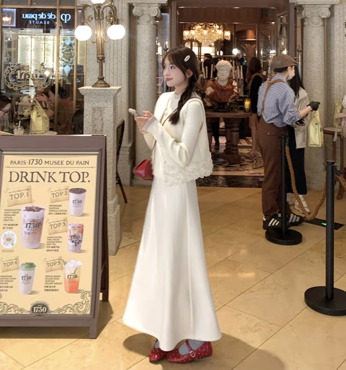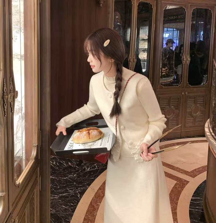 切糕自制小个子冬装马甲白色女新款精致套裙高级裙子毛衣气质套装
