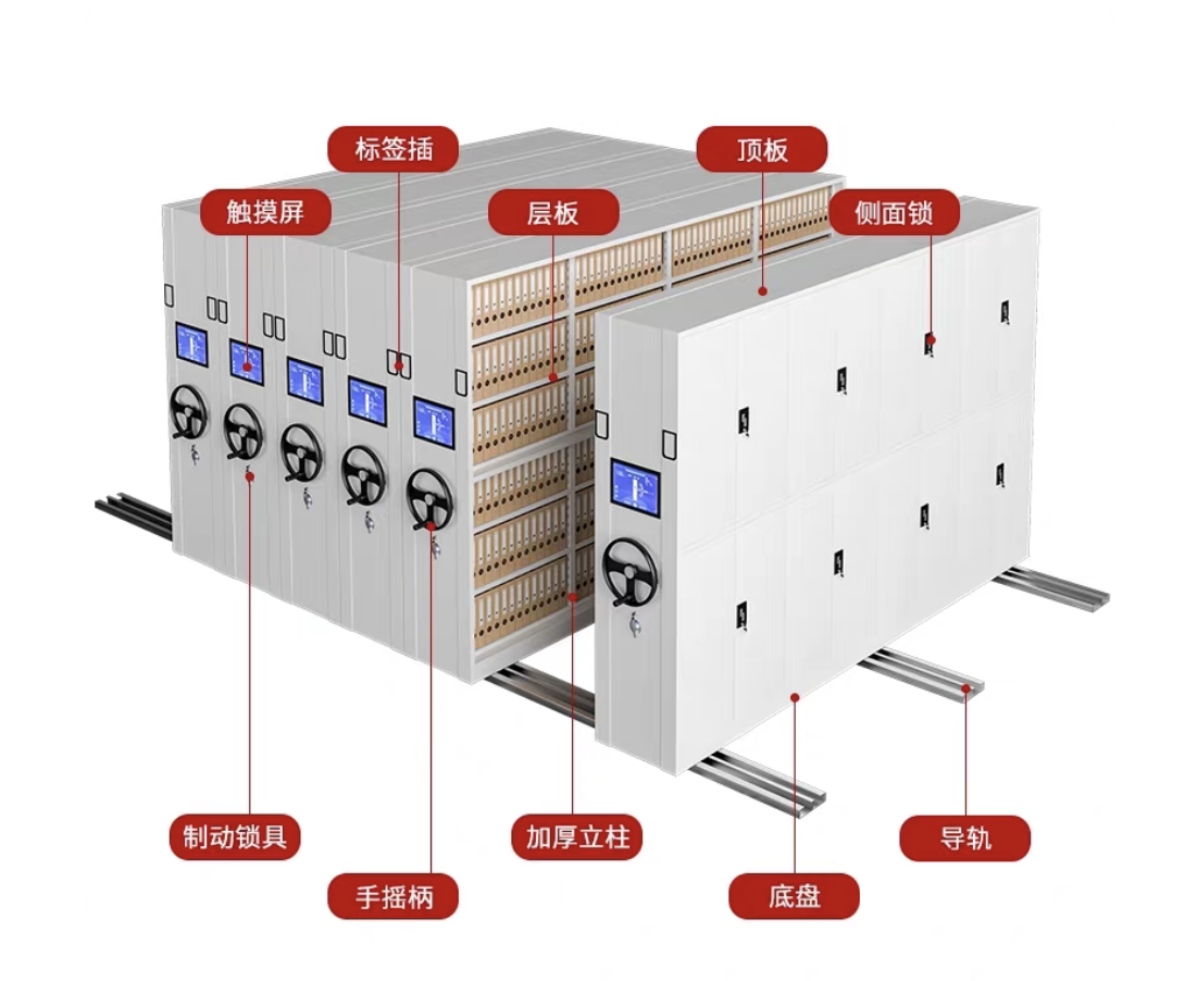 密集架档案柜电动智能密集柜手摇式轨道资料柜凭证柜可移动档案柜