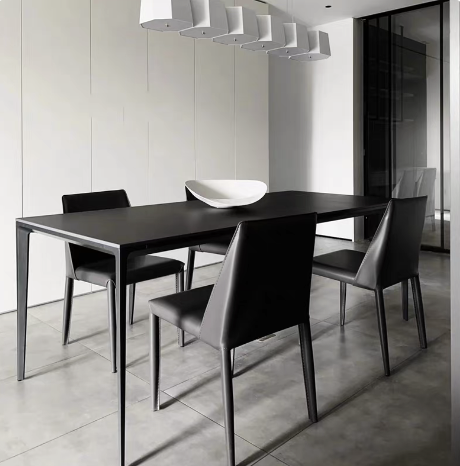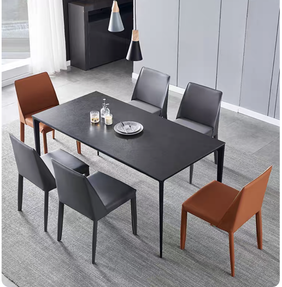 意式极简岩板餐桌家用小户型铝合金饭桌长方形现代简约餐桌椅组合