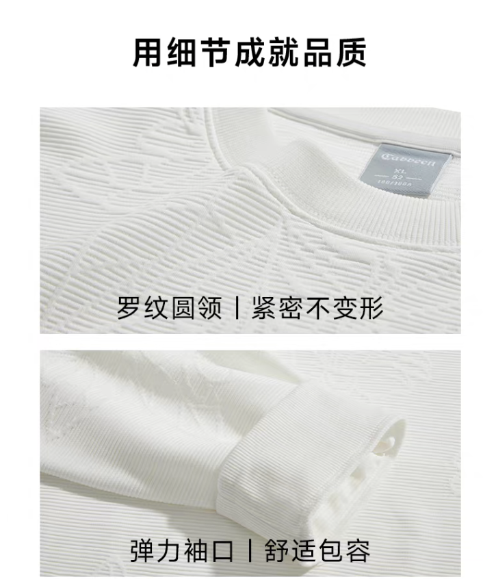 【高定轻奢提花】卡宾肌理高级休闲卫衣男2025秋新落肩袖宽松上衣