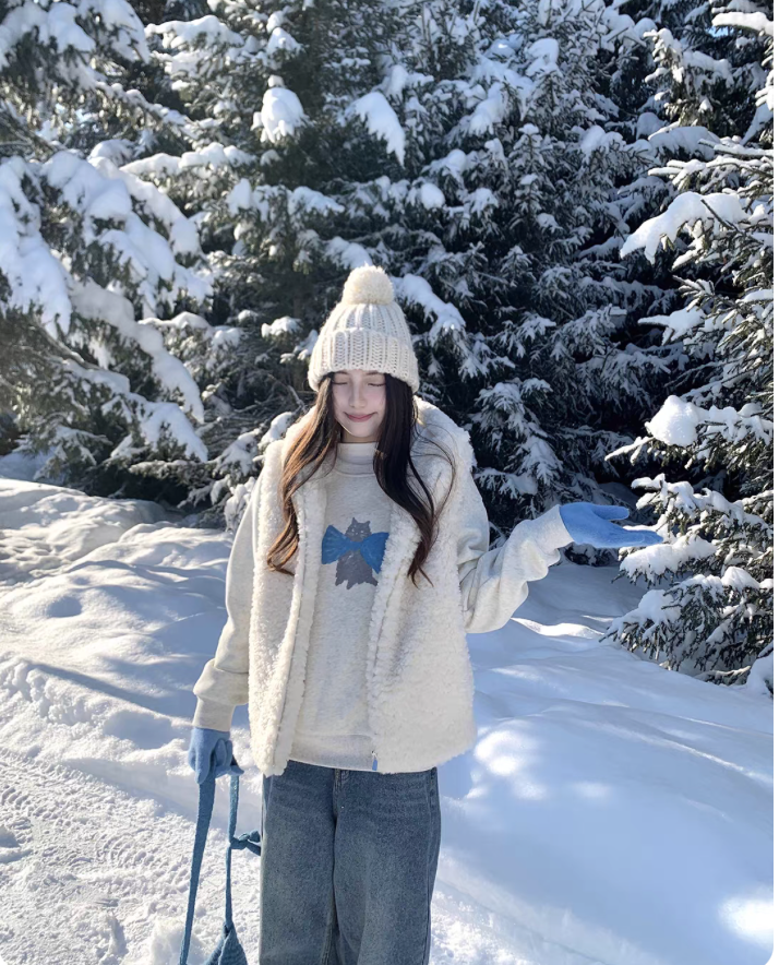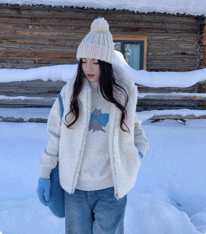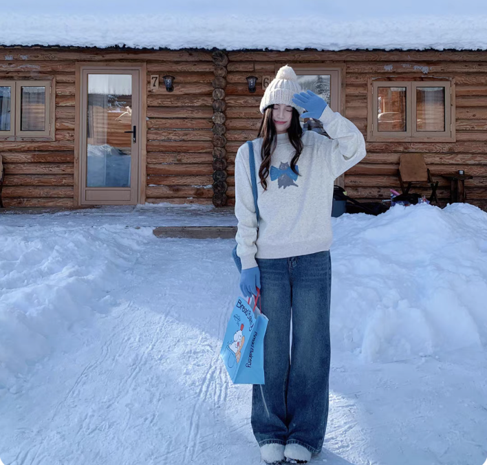 cozydays燕麦色拼接套头卫衣女冬季新款加绒加厚休闲长袖圆领上衣