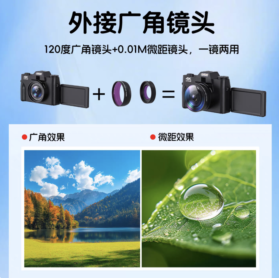 支持外接闪光灯 可旋转 高清摄像 防尘