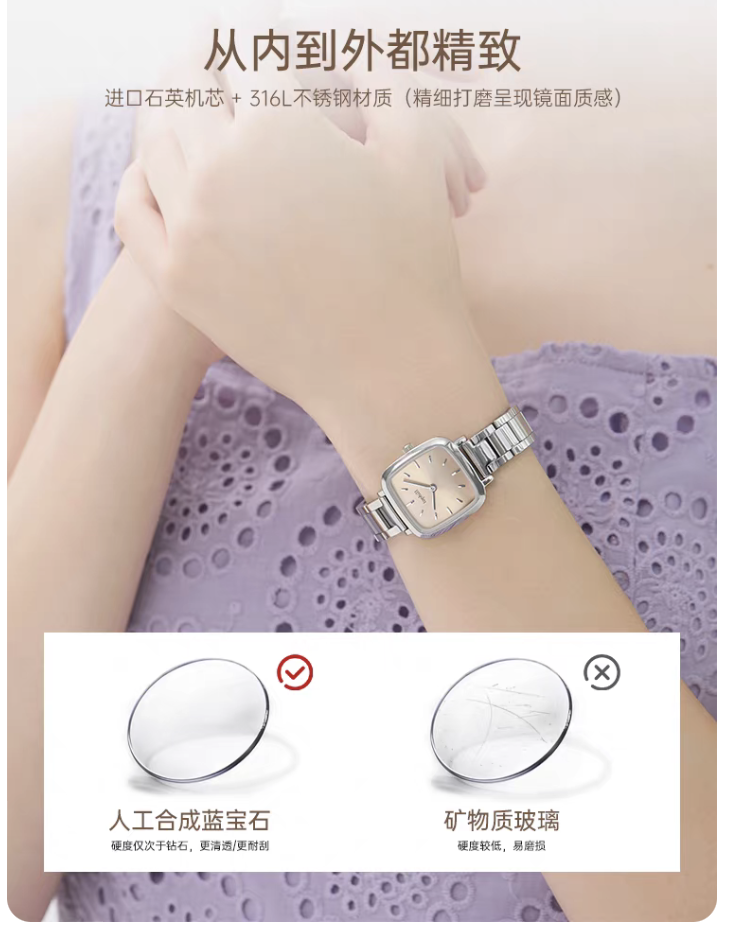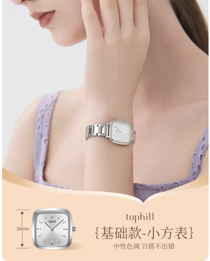tophill拓非小众方糖手表女士轻奢小方形表简约精致腕表