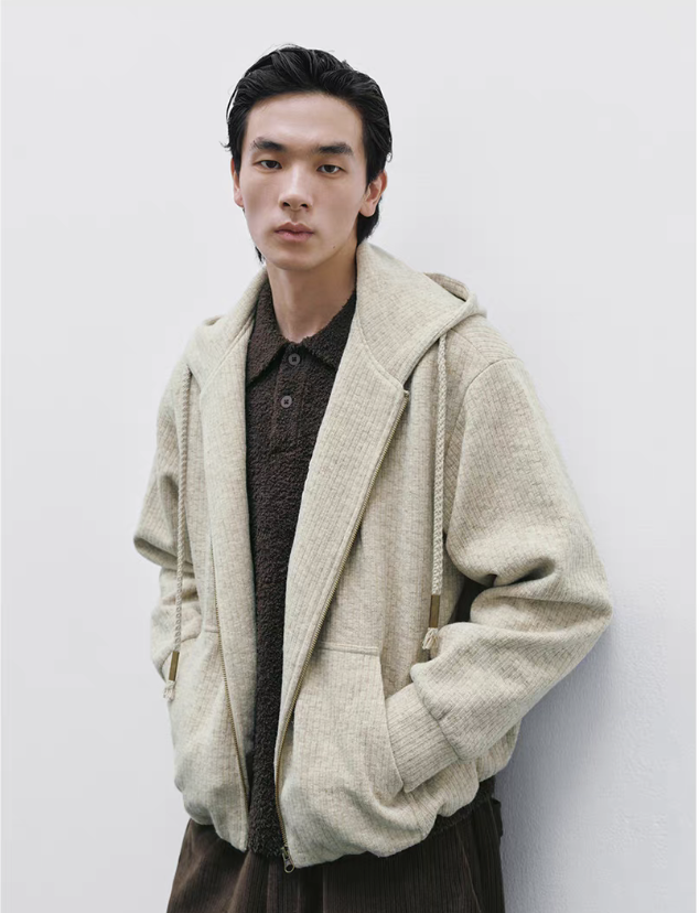 UR2026春季新款男复古休闲连帽抽绳宽松肌理感夹克外套UML150079